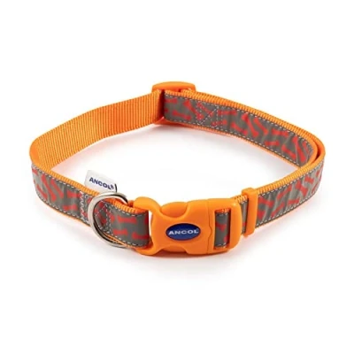 Ancol Patterned Collection Reflective Bone Collar size 5 9 to fit neck circumference 45 70 cm, Orange