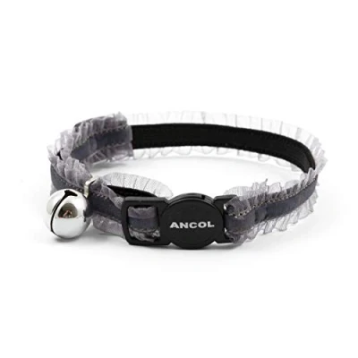 Ancol Velvet Frills Safety Cat Collar, Grey