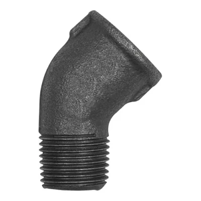 Angle 121, 45°, Rp 3/8 i, R 3/8 a, malleable iron black, operating temperature -20 °C to 300 °C, ISO 7-1
