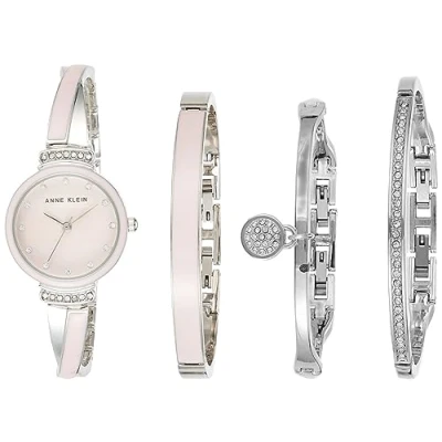 Anne Klein Women's Premium Crystal Accented Bangle Watch Set