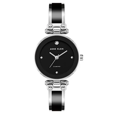 Anne Klein Women's Genuine Diamond Dial Bangle Watch, Black, AK/1981BKSV