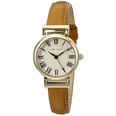 Slightly domed mineral crystal lens; glossy cream dial with black hands and Roman numerals; printed inner minute track Honey leather strap with buckle closure Japanese-quartz Movement Case Diameter: 28mm Water resistant to 100 feet (30M)
