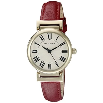 Slightly domed mineral crystal lens; glossy cream dial with black hands and Roman numerals; printed inner minute track Red leather strap with buckle closure Japanese-quartz Movement Case Diameter: 28mm Water resistant to 100 feet (30M)