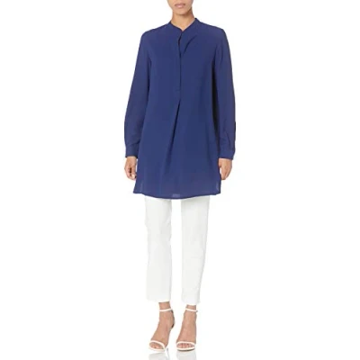Anne Klein Womens Split Neck Long Tunic Blouse, Distant Mountain, Medium US