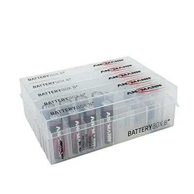 Practical storage for up to 8 Batteries of size AA and AAA and special lithium batteries such as CR 123A, CR 2, and memory cards. ANSMANN Battery box plus puts an end to the short-circuited batteries when just put in a pocket, or the inadvertent discharge and ensures optimum retention, protection, and provides easy to sort case. Compact and handy. Ideal for travelling and at home High-quality plastic processing of the protective box. Several boxes can be attached together. Delivery: 5x ANSMANN battery box plus for 8 batteries / battery / SD card