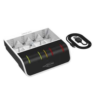 INTELLIGENT battery charger charges fully automatically and stops when the inserted batteries are fully charged. Charges regardless of the number or charge level of the inserted battery batteries thanks to individual slot monitoring COMPATIBLE with 1-4 NiMH batteries in the sizes AA/Mignon/HR6, AAA/Micro/HR03, c/Baby/HR14, d/Mono/HR20 & a 9V E-block; the trickle charge keeps the battery charge at 100%, so the batteries are always ready for use and can remain in the charging station BATTERY REPAIR MODE Tired batteries are automatically detected and gently pre-charged in repair mode with reduced power - to reactivate deeply discharged batteries SAFETY for batteries and chargers through reverse polarity protection; auto shutdown -dU; overcharge protection; individual shaft monitoring; safety timer after 17h/24h (round cells/block); detection of defective battery cells and non-rechargeable batteries CHARGING TIME For AAA 1000mAh = approx. 3h; for AA/C/D 2500mAh = approx. 3h45min. Output AAA 400mA, AA 800mA, 9V 15mA. Trickle charge current AAA 6.5mA, AA/C/D 13mA, 9V 1.3mA Note- Please always ensure that the battery is inserted with the correct polarity