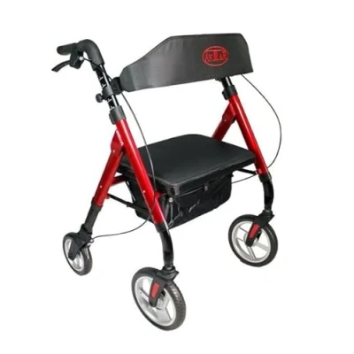 Robust 8 inch rear rubber wheels, front wheels 10 inches, height-adjustable back strap, removable, washable seat cover Frame: Aluminium, Maximum load: 180 kg Adjustable handle height: 97 cm - 108 cm (6 levels adjustable) Seat height: 56 cm to 62 cm (4 levels adjustable), seat size (cushion): 48.5 x 36.5 cm Seat dimensions: seat cushion width 48 cm / seat width (distance between handles) 56 cm / depth 36 cm / height 5 cm Dimensions of the rollator: depth 79 cm, width 68 cm, height 97 cm - 108 cm
