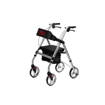 Antar Aluminium rollator silver Maximum product load: 136 kg Folding dimensions: L15 x W58.5 x H53.5 cm Total width: 63 cm Depth: 69 cm Seat height: 54 cm Size of the seat: 42 cm x 27 cm Height adjustment range of the handle: 80-89 cm Wheels: 8 inches Maximum load of the bag: 5 kg