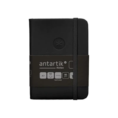 Antartik NOTEBOOK WITH RUBBER NOTES HARD COVER A7 SHEETS SMOOTH BLACK 80 GR FSC