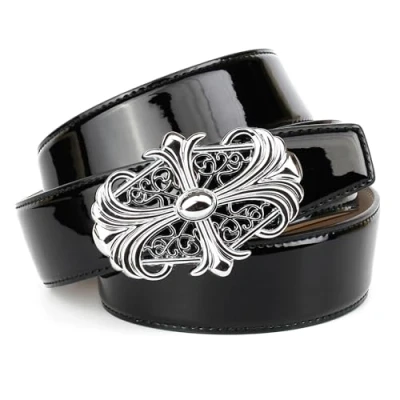 Workmanship: the strap is sewn together from two parts. The upper part is 100% patent leather, the lower part is high-quality, pleasantly soft, durable and environmentally friendly faux leather. The belt strap is 3.9 cm wide and 4.0 mm thick. The white back is also suitable for light trousers. In the middle is the brand name "Anthoni Crown". Can be shortened individually: a belt with automatic buckle can be easily shortened in just 4 steps: 1. Open the clamp on the back of the buckle with a screwdriver or knife and pull out the belt. 2. Measure and mark the length by which the belt needs to be shortened. 3. Carefully cut the piece along the line with scissors or a sharp knife. 4. Insert the belt into the buckle and close the clamp. Gift idea and Packaging: belt comes in an original Anthoni Crown gift fabric bag. Ideal gift for mother, grandma, daughter, sister or colleague if the belt length is unknown. Stylish and vill-sided: urban belts in black with automatic clasp set stylish accents and depending on the occasion, can be worn with a suit or favourite jeans. The silver buckle is nickel safe and has a clamp closure. The white back is also suitable for light trousers. Correct size: the sizes shown are the waistbands. The waist size corresponds to half the body circumference at the waist height, where the belt should sit later. The total length of the belt is always approx. 10 cm longer than the waistband. If you are in between, we recommend choosing the larger belt size for the Anthoni Crown belt.