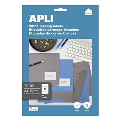 APLI 10 Sheets 105.0 x 74.0 mm Permanent Labels 12921