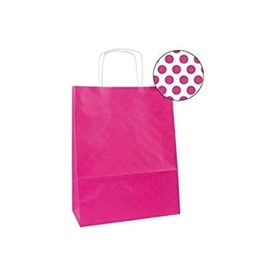 Kraft bags in fuchsia size 32 x 16 x 39 cm Bags made of 100gsm kraft paper, high tear resistance and curly handles for easy transport Reusable and recyclable bags, ideal for any trade Each pack contains 50 bags