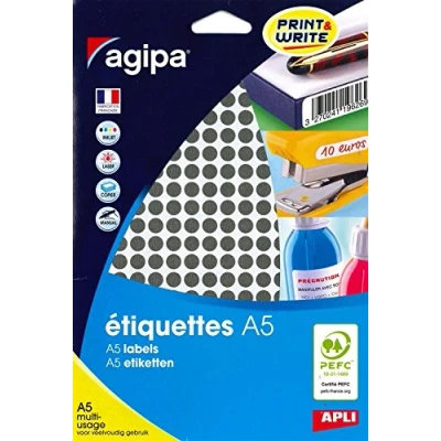 Black Multipurpose Tablets Diameter 8mm. Pack of 10 Sheets of A5 Multipurpose 2940 Tablets. Permanent Adhesive Multipurpose:Identify, price marking, signage, etc. These labels are an ideal product for easy printing and also for handwriting. apli-agipa self-adhesive labels for inkjet printers, laser printers and copiers on the market: Epson, Canon, HP, Lexmark..No storage risk thanks to high temperature resistant adhesive.
