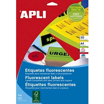 Fluorescent orange labels straight edges size 210 x 297 mm with permanent adhesive Pack of 100 sheets (100 labels) These colored fluorescent finish sticker labels are a must if you want to highlight an object, highlight relevant information, or mark a shipment Excellent print quality on laser printers or copiers Download the free software to design and print all kinds of labels on the web of apli