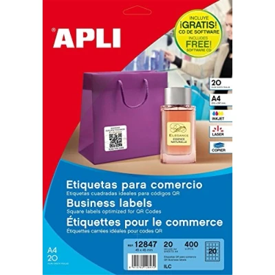 White labels blunt edges size 45.0 x 45.0 mm with permanent adhesive Pack of 20 sheets (400 labels) Special labels for trade and qr code printing; square format ideal for printing qr codes or labeling products in shops Excellent print quality on inkjet printers, laser printers or copiers