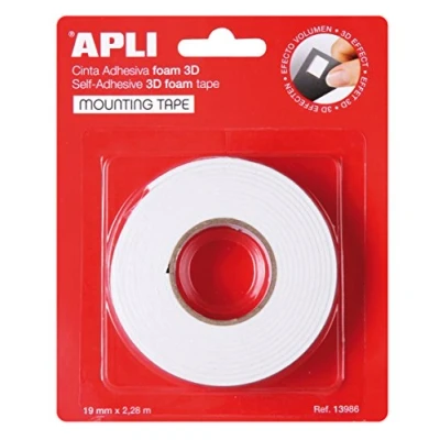APLI 13986 Double Sided Foam Tape 19mm x 2.28m White