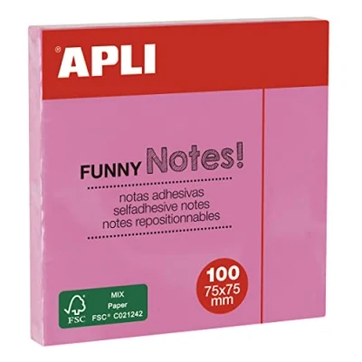 APLI 19082 Sticky Notes FUNNY 75 x mm Pad of 100 Sheets Pastel PINK