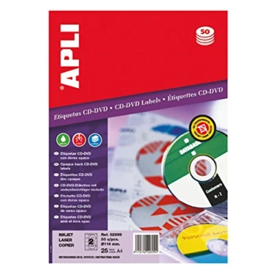 White labels for inkjet, laser and copiers Adhesive: permanent Label size: ext: Ø 114 mm – INT: Ø 41 mm