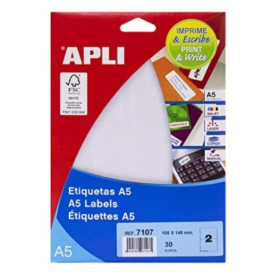 APLI 7107 A5 White Labels 105 x 148 mm 15 Sheets