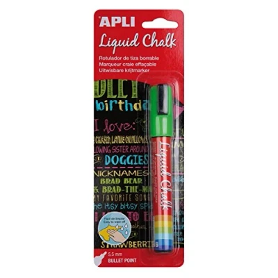 Liquid Chalk Marker Pen 5.5mm Bullet Tip Green Ideal for writing on blackboards, plastic, windows, chalkboard labels, mirrors, ceramics, vinyl, metal etc Easy to use with a damp cloth on non-porous surfaces; Quick drying for a more precise and professional result Easy to use: shake and fold. and painting. PA20232023 water-based marker non-toxic