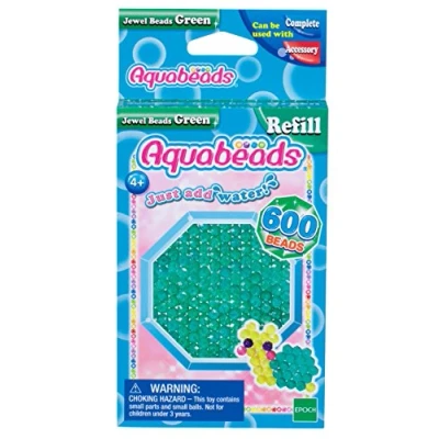 Similar to iron-on beads, the Aquabeads craft beads connect magically. The whole thing works without ironing and only by spraying water. Bastelperlen im Aquabeads Einzelpack zum Nachfüllen (grün) 600 glitter beads Even more crafting fun Suitable for ages 4 and up, Manufacturer: Epoch Traumwiesen GmbH