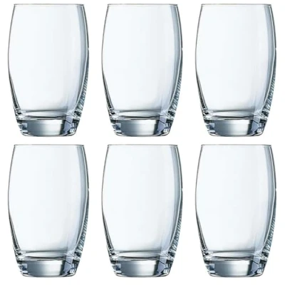 CookinglifeThis Arcoroc Salto 35 cl water glass is the ideal classic water glass that fits any table. Whether you are dining chic or having a casual dinner. The glass has a capacity of 35 cl and is 12 cm high. The glasses come as a set of 6.