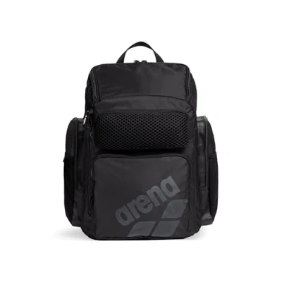 The perfect companion for the pool! This large and stylish backpack offers plenty of room and easy access for all your swim or sports gear. Featuring Aquabreathe, arena's new wet management system that keeps moisture under control. One roomy main compartment and four external zipped front pockets to store wet and dry stuff separately. Smart laptop sleeve. Two external bottle pockets. Carabiner. Practical strap to secure it to a suitcase. The water-repellent main fabric and bottom protect your gear from moisture and dirt. Breathable back panel. Dimensions: 50 cm x 40 cm x 25 cm, 45L Ideal for swimming, sports, leisure time and travels 60% Nylon, 40% Polyester