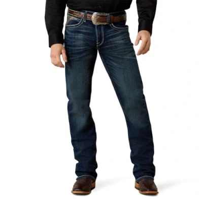 STACKABLE BOOT CUT: A modern take on a classic fit, these bootcut jeans are relaxed through the waist, hip and thigh for the most comfortable fit, all day long; Show off your boots with the stackable design, creating a perfect over-the-boot silhouette PREMIUM FEATURES: These western jeans for men have no-rub comfort inseams that prevent abrasion against the skin; Other features include reinforced pockets with coin pocket feature, anchored belt loops, and heavy-duty zippers and hardware GREAT GIFTS: Shopping for your husband or boyfriend shouldn't be difficult, and with these durable jeans from Ariat, it won't be; Perfect for work, outdoors or a night out, the hard-working man can wear these jeans for any occasion MADE TO LAST: Made of a premium blend of cotton, the ring-spun denim gives these pants optimum durability; These jeans are made to last and create a western style statement that cowboys are known for SCIENCE OF INNOVATION: Ariat excels in advanced technologies to deliver products that outperform in various conditions; Partnering with world-class biomechanical research groups and testing labs, Ariat strives to improve performance, comfort, and durability;