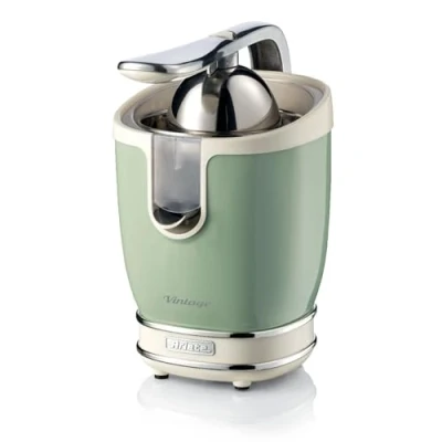 EASY PRESSING: Electric citrus press with lever to squeeze citrus fruits effortlessly 85 WATT: Powerful and quiet motor for freshly squeezed oranges, lemons and other citrus fruits All citrus fruits: includes 2 cones for squeezing all types of fruits; the large cone is made of stainless steel and the small cone is equipped with a stem to hold the berries firmly Cleanliness: thanks to the pouring spout, you can easily avoid dirty work surface and waste of juice Vintage Ariete line: with this citrus juicer, Ariete Vintage brings a touch of retro style to your kitchen, thanks to its soft lines, delicate colours and precious finishes, Weight: 2.5573622392 pounds, Manufacturer: Ariete