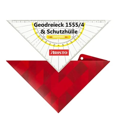 Aristo AR18034B Set Square AR1555/4 with Geocover Protective Case (Hypotenuse 25 cm, Removable Handle, Ink Knobs, Holes and Magnetic Closure) Basic