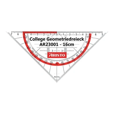 AmazonThe college geometry triangle with a hypotenuse of 16 cm is scale, protractor, symmetry scale and parallel ruler in one and therefore can be used in school, study and work It has facets on all sides. These bevels on the edge of the triangle are used for exact pen guidance and ensure a precise stroke The set square has ink nubs. These ensure a distance of the triangle from the paper. This prevents ink smearing and protects the division from wear. The divisions, symbols and the lettering are applied on the back. The angle scale is orange background and thus forms a good contrast to the paper Box contents: 1x AR23001 angle triangle made of transparent polystyrene plastic
