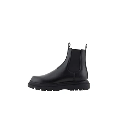 Armani Exchange Men's Chunky Sole, Embossed Logo, Real Leather Ankle Boot, Black, 8 UK