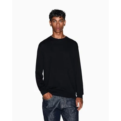 Armani Exchange Men's Long Sleeve Regular Fit Cotton Satin Button Down Shirts, Black, S