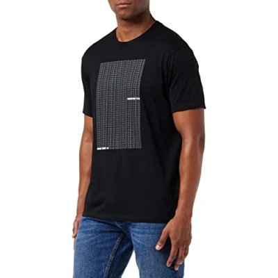 Armani Exchange Men's Round Neck, Logo Pattern on Front T Shirt, Black, XS