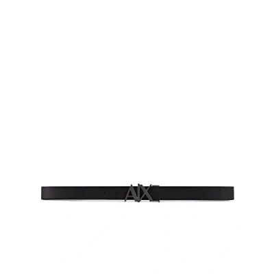 Armani Exchange Men's Split Leather Double Sided Logo Belt, Black/Dark Brown, 34