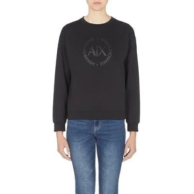 Armani Exchange Women's Circle Logo Pullover Sweatshirt Sweater, Black, S