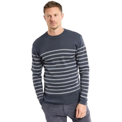 Armor Lux GOULENEZ Merino Wool Buttoned Sailor Sweater, Tornado/Misty Grey, S
