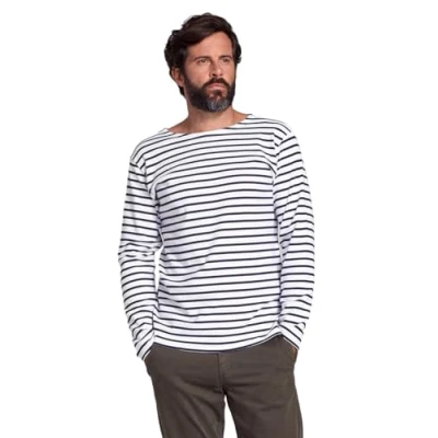 Mens Long Sleeve Sailor Shirt Boat Neck Slim Fit Héritage Collection Interlock mesh Armor Lux Iconic Knitted Jumper Total height with size L: 73 cm
