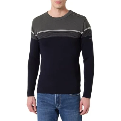 CLASSIC AND STYLISH STYLE - Timeless marine sweater promises a stylish look in any circumstance Details & Materials Men's two-tone marine jersey, crew neck, buttoned leg at shoulder, thin stripes and clothing top, placed stripes, length for a size L: 28", length varies from 1.5cm by size, Material: 100% wool, mannequin is 1.85m tall and wears a size L SIZING - We dress women's sizes XS to 5XL, and men sizes 2XS to 4XL. QUALITY AND AUTHENTICITY: Since 1938, Armor-Lux has been recognized for the quality of its sea-inspired clothing. An authentic taste for the great French marine-style classics, where elegance rhymes with comfort.