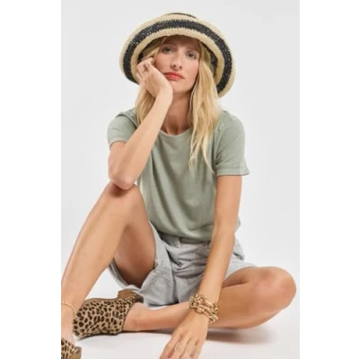 Armor Lux Women's À Manches Courtes Col Rond Uni En Coton Et Lin Femme T Shirt, shadow, L