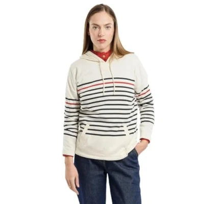CLASSIC AND ELEGANT STYLE: The hoodie is the ideal piece to combine comfort, softness and casual look, it wraps you in warmth while affirming a casual and trendy look DETAILS and MATERIALS: Women's striped sweatshirt, Long sleeves, Round neck, Hood, 2 low pockets, Striped placed, Rustic jersey knit, Length for a size 1: 63 cm, Length varies from 1 cm per size, Material: 100% cotton, Model is 1.80 m and wears a size 1 SIZES: We dress women's sizes from XS to 5XL, and MEN from 2XS to 4XL QUALITY AND AUTHENTICITY: Since 1938, Armor-Lux has been recognized for the quality of its clothes inspired by the sea. A taste of authentic for the great French classics in a marine style, where elegance rhymes with comfort