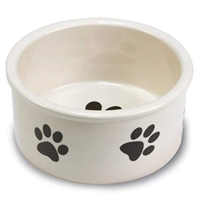 Arquivet 2509 Ceramic feeder with footprints, 12 cm, White/Black