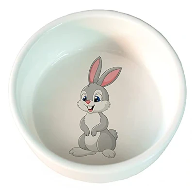 It is a good alternative to plastic or stainless steel feeders. Measurements: 11 cm capacity: 300 ml Completely stable and easy to clean. Not dishwasher safe. With rabbit pattern. Decorated with drawing of a rabbit.