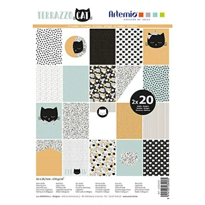 Artemio 40 Sheets of Scrapbook Paper A4 Terrazzo Cat