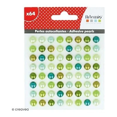 Artemio Adhesive Half Pearls Green 64 Pieces