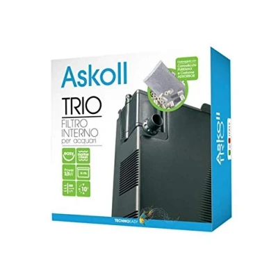 Askoll Trio Internal Filter for Aquariums internal filter for aquariums from 0 liters to 70 liters Maximum filter capacity: mechanical, biological and chemical Very convenient: easy installation and maintenance (takes 10 minutes) The package includes: 1 x sponge for mechanical filtration, ADSORBOR carbon for adsorbent filtration, PUREMAX cannolicals for biological filtration, Weight: 2.20462262 Pounds, Manufacturer: Askoll