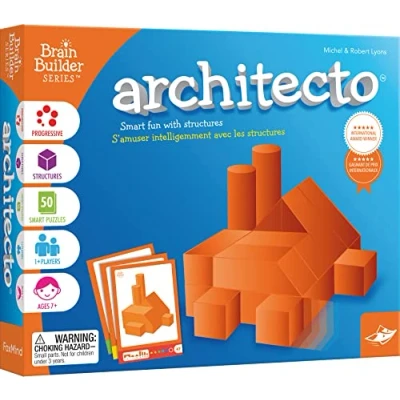 Architecto is a thinking and spatial visualization game played alone. Players build 3D models based on perspective illustrations. From simpler shapes to very complex structures, players develop solid ideas of geometry and spatial visualization. Apart from being a real educational experience, it is above all an exciting and engaging game. Architecto is part of the Architecto line of 4 space visualization games where players progress at their own pace through a series of puzzles that are becoming increasingly difficult. The games include the same geoblocks set and a separate puzzle booklet in 6 difficulty levels. From 7 years --- 1 player, Manufacturer: FoxMind
