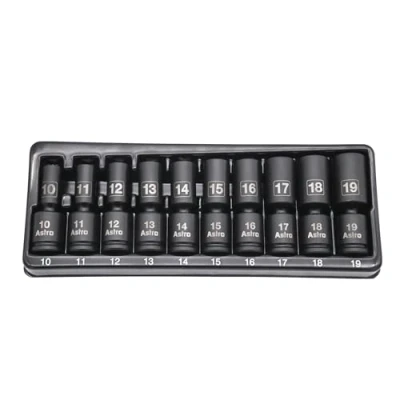 Astro Tools 78344M 10pc 3/8" Drive Mid Length Pinless Universal Impact Sockets Metric