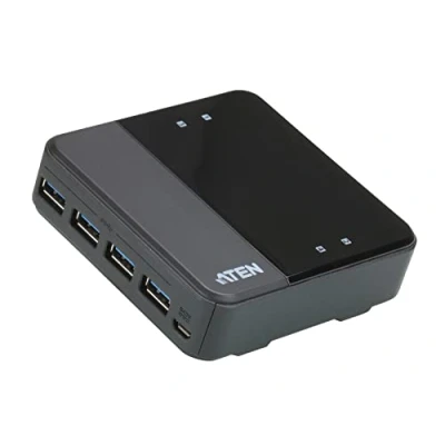 Activates 4 computers to share your 4 USB 3.0 devices Rotate Both easy port selection via remote port selector for comfortable in the switch USB 3.0 compatible, supports data transfer rates of up to 5 Gbps LED's show which computer is active Überstromschutz