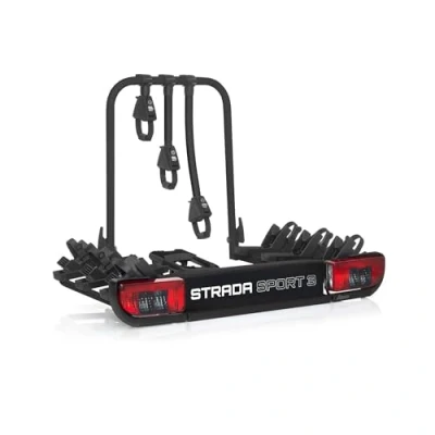 Efficient" steel rear rack for 3 bicycles or 2 e-bikes, expandable to 4 bicycles Maximum load 66.9 kg, for all bike sizes and tire sizes For frame diameters of 25 80 mm, bicycle rail spacing 180 mm, own weight 17.9 kg Including bicycle anti-theft device and carrier anti-theft device Integrated lighting system with light protection, 13-pin plug connection, EU operating permit